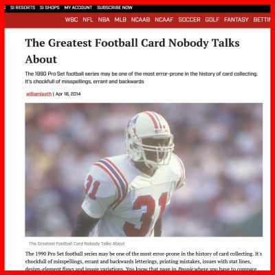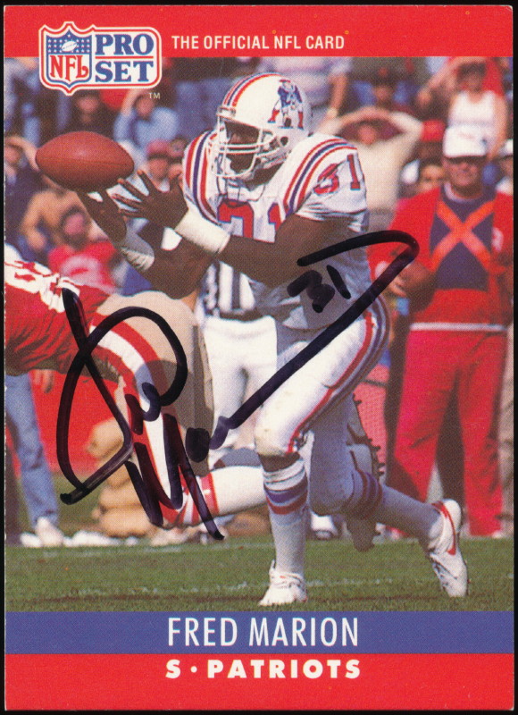 ![]() 1990 Pro Set Fred Marion #204a Error w/ John Taylor's Belt Showing |