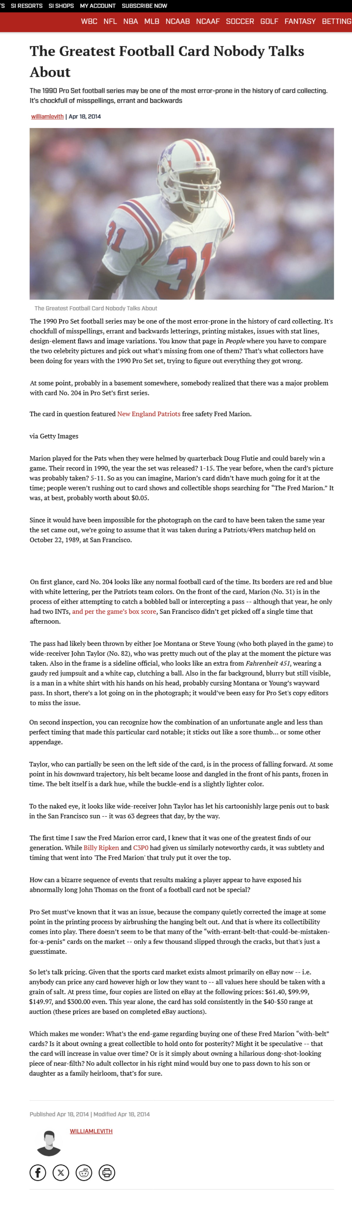 2014 Sports Illustraded (si.com) Article: