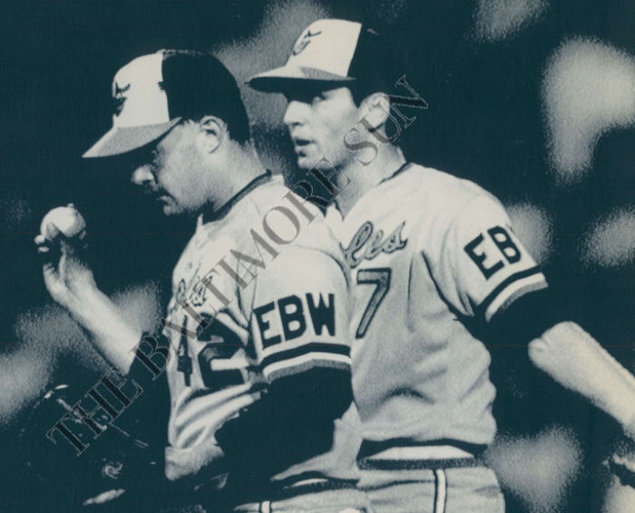 The letters 'EBW' were added on the left sleeve to honor the passing of owner Edward B. Williams who passed away on August 13th, 1988. The FF card photo doesn't have those letters on the sleeve - indicating it was taken during the first of two trips the Orioles made to Boston in June of 1988.